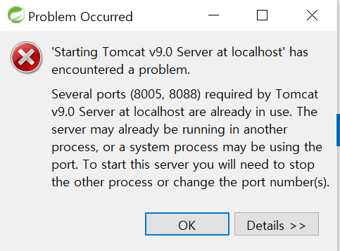 ํ๋ก์ ํธ Tomcat ์๋ฒ๋ฅผ ์คํํ๋๋ฐ ์ด๋ฐ ์๋ฌ๊ฐ ๋ฐ์ํ์๋ค.